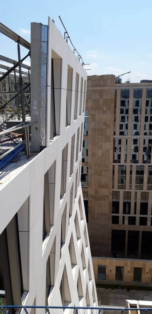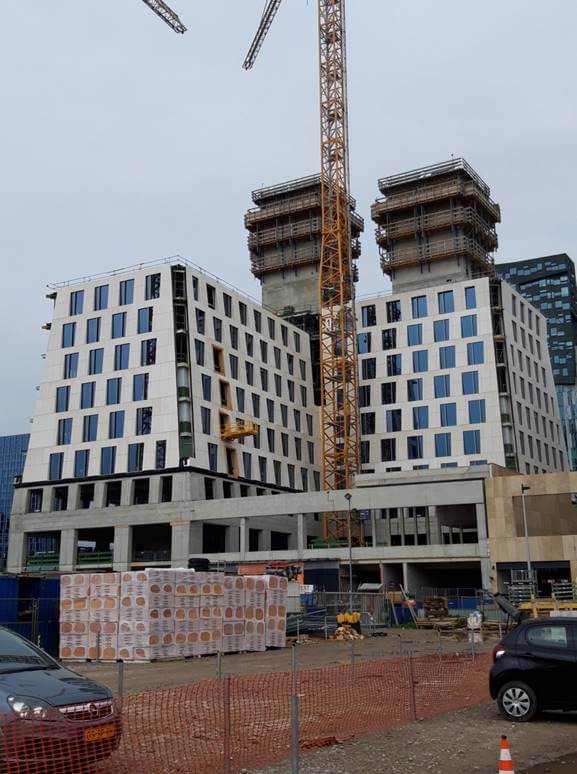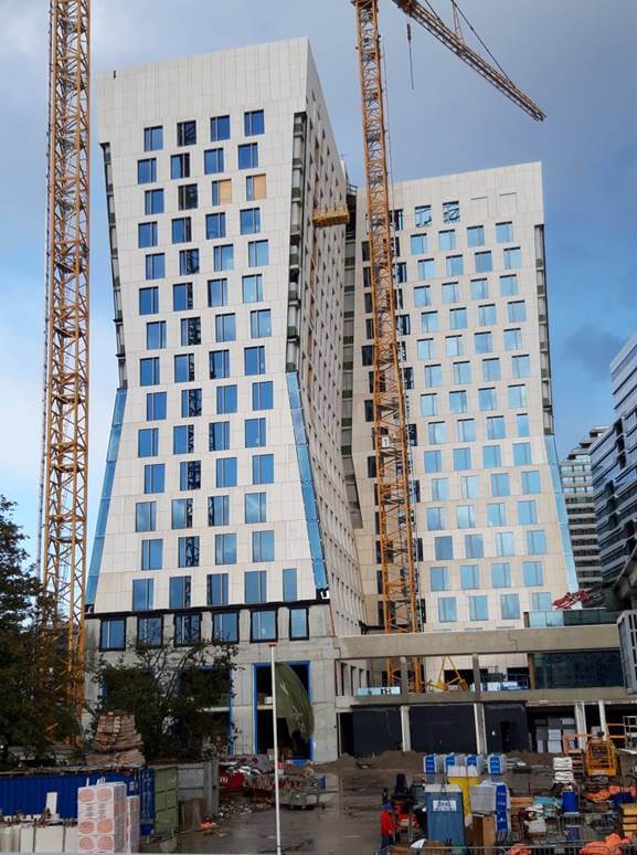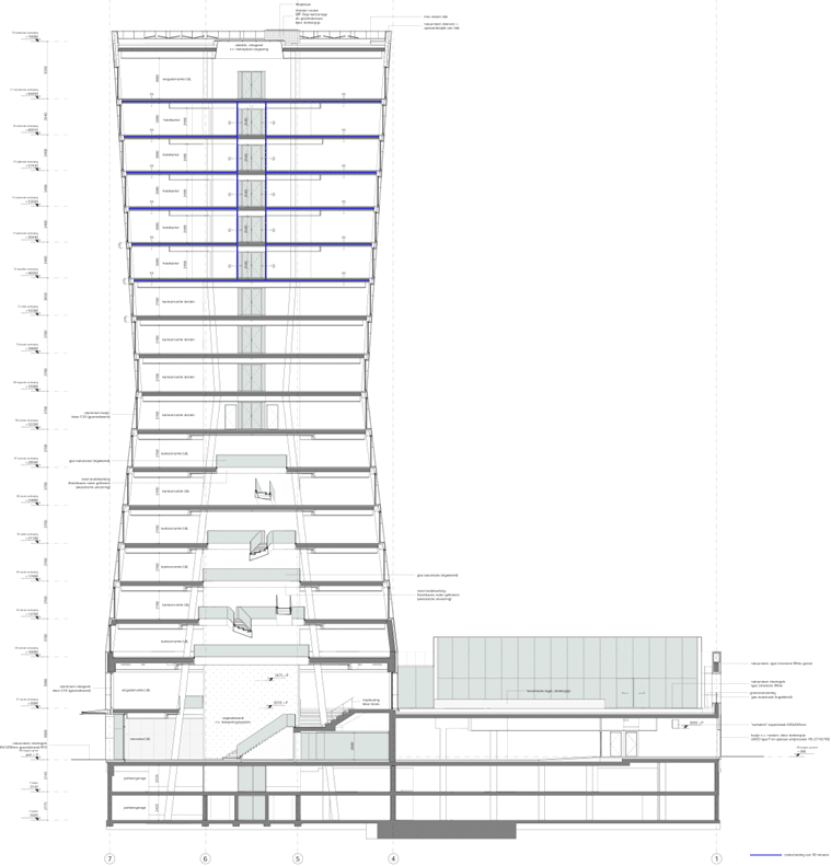 - De derde kern is tot en met de zevende verdieping traditioneel gebouwd en daarna – op basis van voortschrijdend inzicht – in prefab uitgevoerd.