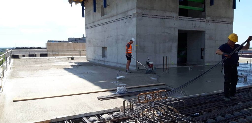 Een van de grootste uitdagingen was de aansluiting van de verdiepingsvloeren, waar door de constructieve opzet een zeer hoge concentratie wapening aanwezig was. De beschikbare ruimte in de voegen om beton te storten was beperkt.